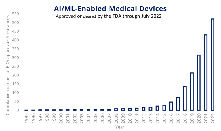 En octubre de 2022, la FDA publicó una lista de productos sanitarios habilitados para inteligencia artificial y aprendizaje automático (AI/ML) autorizados/aprobados y la Administración seguirá actualizando esta lista, que resulta ser un tesoro de información.
